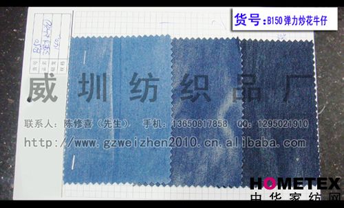 長(cháng)期供應 彈力炒花牛仔面料 洗水牛仔面料 工藝印花