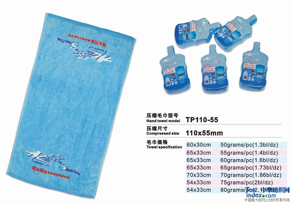 高級環(huán)保壓縮毛巾是二十一世紀的高科技成果、采用100%純棉經(jīng)高溫壓處理而成的新一代產(chǎn)品。放入水中浸片刻即可張開(kāi)使用。本產(chǎn)品新奇獨特,干凈衛生,產(chǎn)品企業(yè)形象宣傳極具效力。廣泛用于廣告宣傳界、酒店、旅游公司等。
