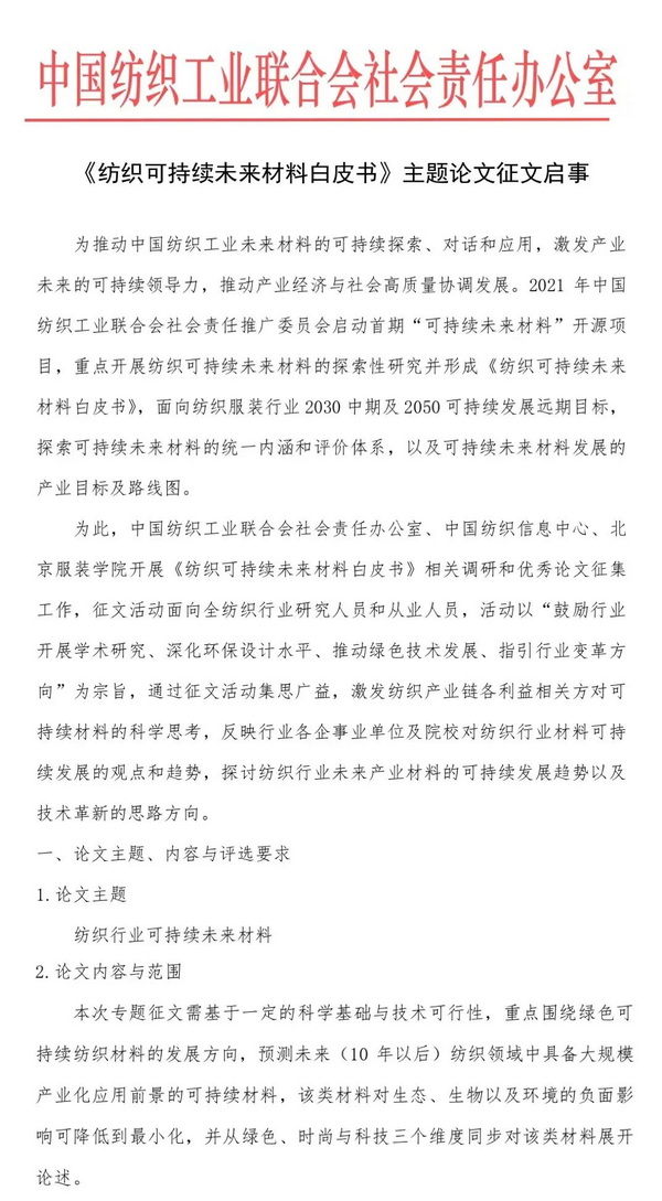 《紡織可持續未來(lái)材料白皮書(shū)》征文啟事 相關(guān)新聞