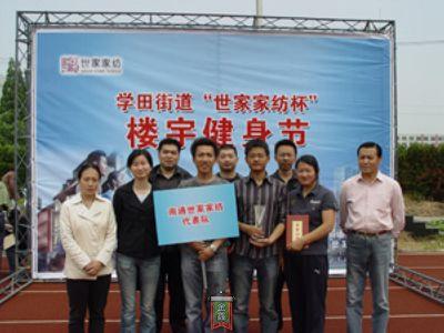 5月15日上午,學(xué)田街道“世家家紡”杯樓宇健身節在南通大學(xué)文峰校區體育場(chǎng)正式啟動(dòng),來(lái)之街區內的8支代表隊100多人參加了拔河、雙人夾球、呼啦圈、瞎子敲鑼、投籃、袋鼠跳項目的比賽!笆兰壹壹彙贝黻牜@得“雙人夾球”項目的第一名。