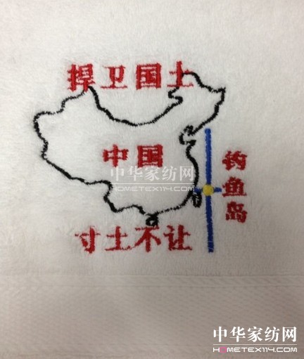 2012-9-20近期以來(lái),日本政府不顧中國政府和人民的強烈反對,對我國固有領(lǐng)土釣魚(yú)島及其部分附屬島嶼悍然實(shí)施所謂“購買(mǎi)”行為,對我國主權和領(lǐng)土完整的公然侵犯對國際法理的嚴重踐踏,激起了中國人民的強烈憤慨。近日,網(wǎng)友“麥咭麥咭吽”的微博上,貼出夢(mèng)潔家紡四萬(wàn)條特制愛(ài)國毛巾的圖片。白色毛巾底紋里印上了中國疆域的輪廓,彰顯...[繼續閱讀] -